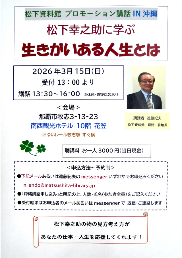 松下資料館 プロモーション講話 IN 沖縄 開催案内